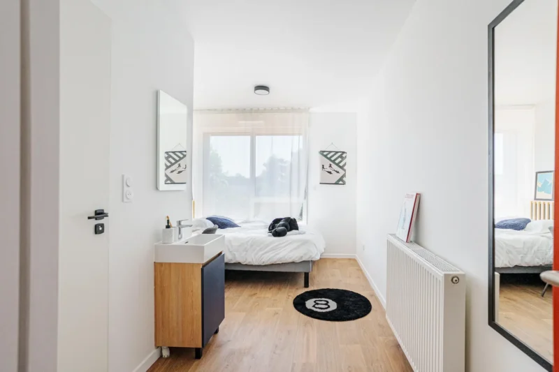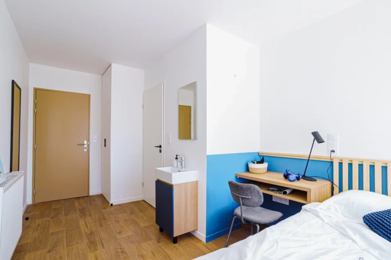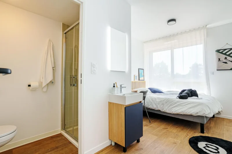 Que tu cherches un studio privatif ou un mini-studio en colocation, la résidence étudiante Ecla Genève Archamps te propose des appartements meublés et équipés avec tout le confort dont tu as besoin pour réussir tes études près de Genève. Chaque chambre est pensée pour allier confort, intimité et vie étudiante dynamique.