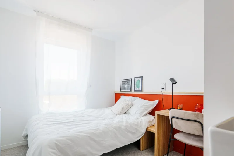 La résidence propose des studios privatifs tout équipés, des mini-studios en colocation et des appartements T2. Chaque chambre est livrée meublée et équipée : lit Tediber, bureau ergonomique, salle de bain privative, cuisine commune. Ton loyer inclut toutes les charges : eau, électricité, chauffage et wifi ultra haut débit. Plus besoin de courir après chaque facture , tu peux te concentrer sur tes études et profiter de ta vie étudiante à fond.