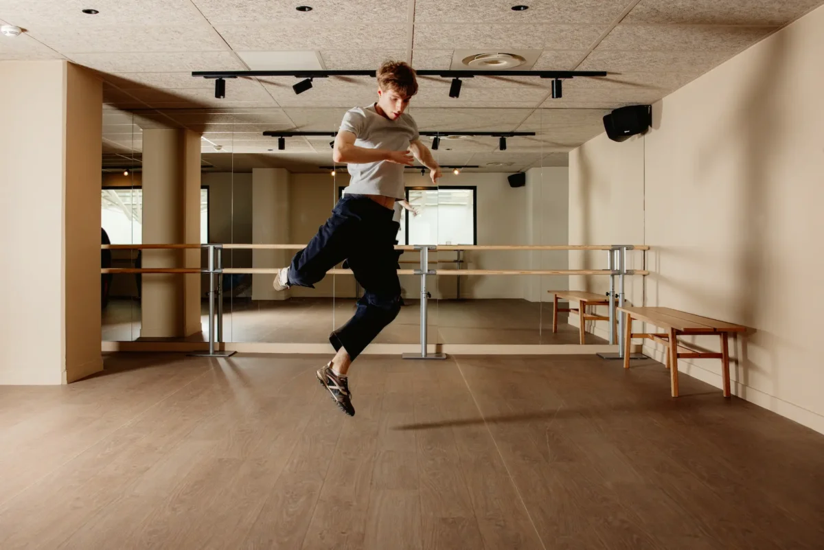 Espace dédié au yoga, au stretching ou à des cours de danse, pour décompresser après une longue journée sur le campus.